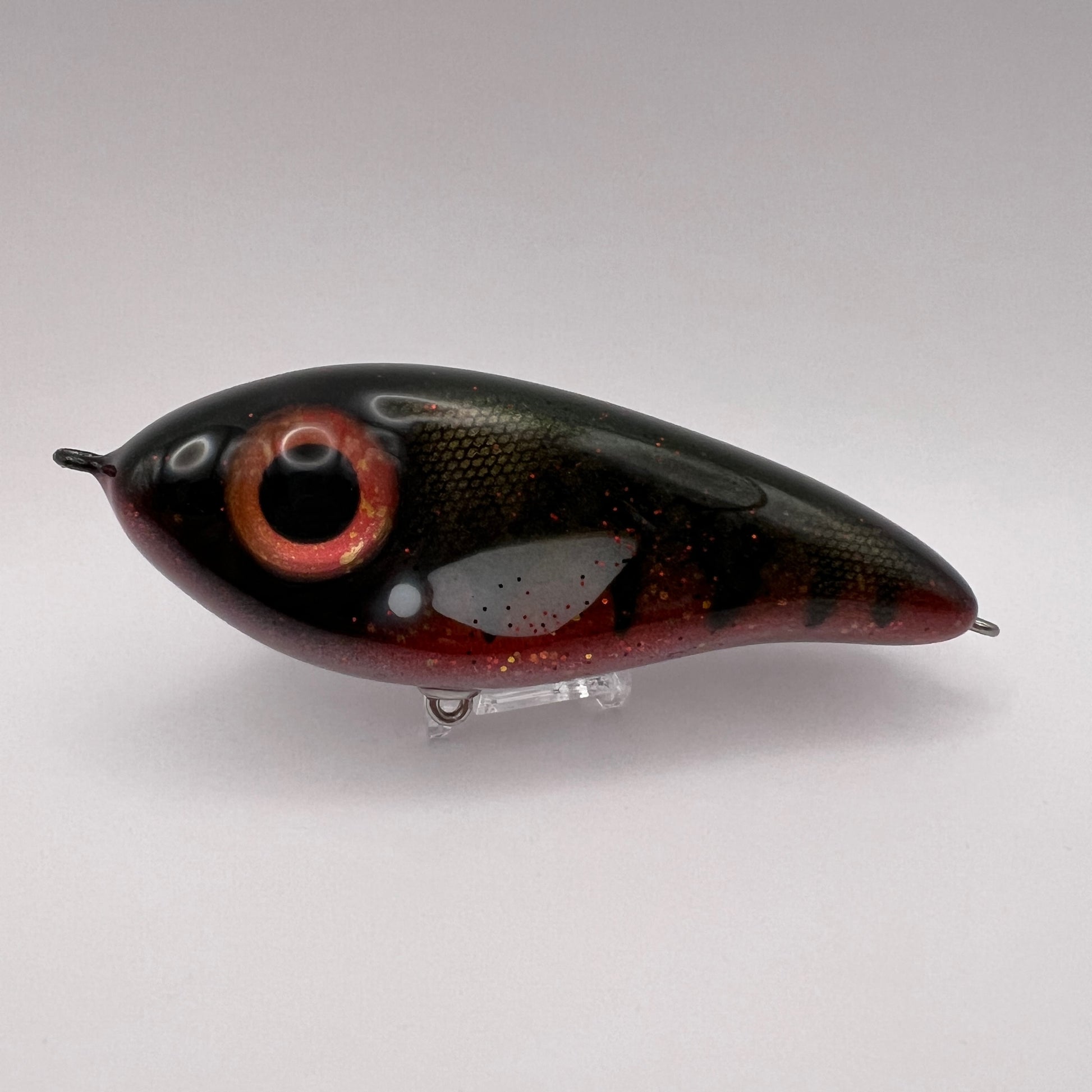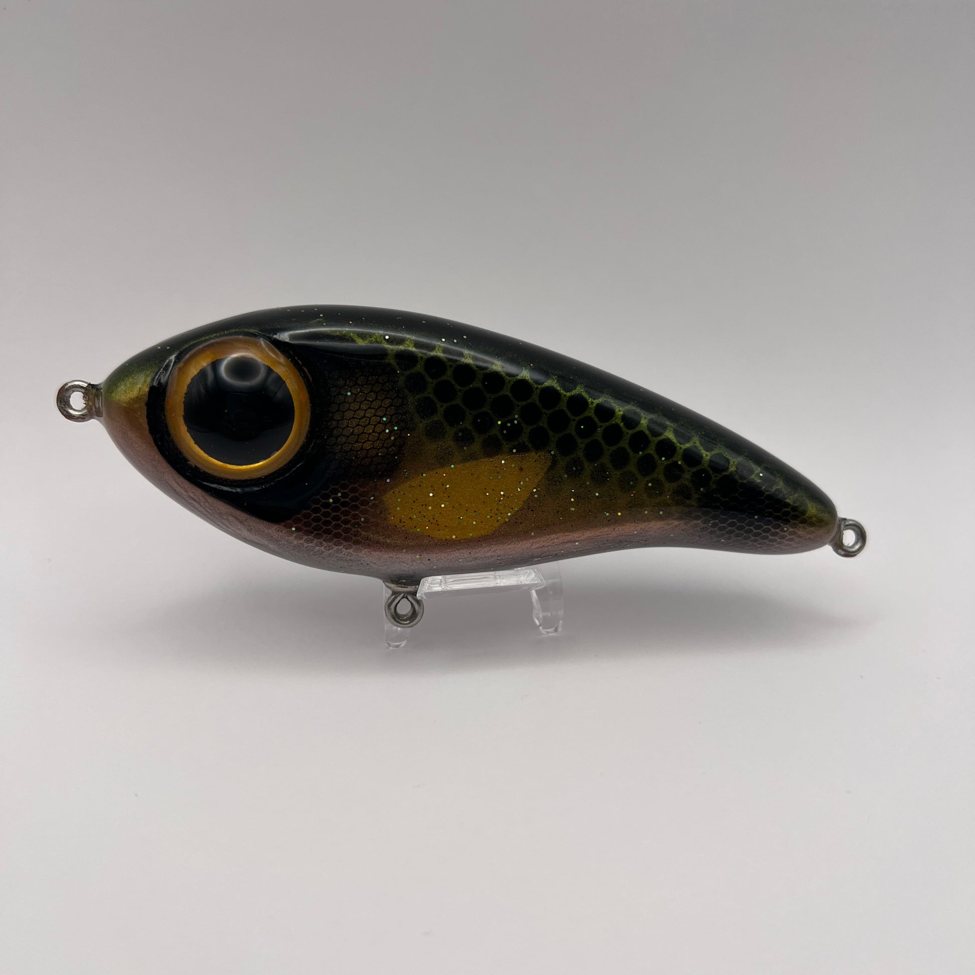 13cm och ca 63 gram. Ett downsize bete som passar de flesta spön. Slowsink och funkar fint att ta hem långsamt vevandes och simmar då i vida S kurvor. Eller jerka hem den och den rör sig som en skadad fisk.
