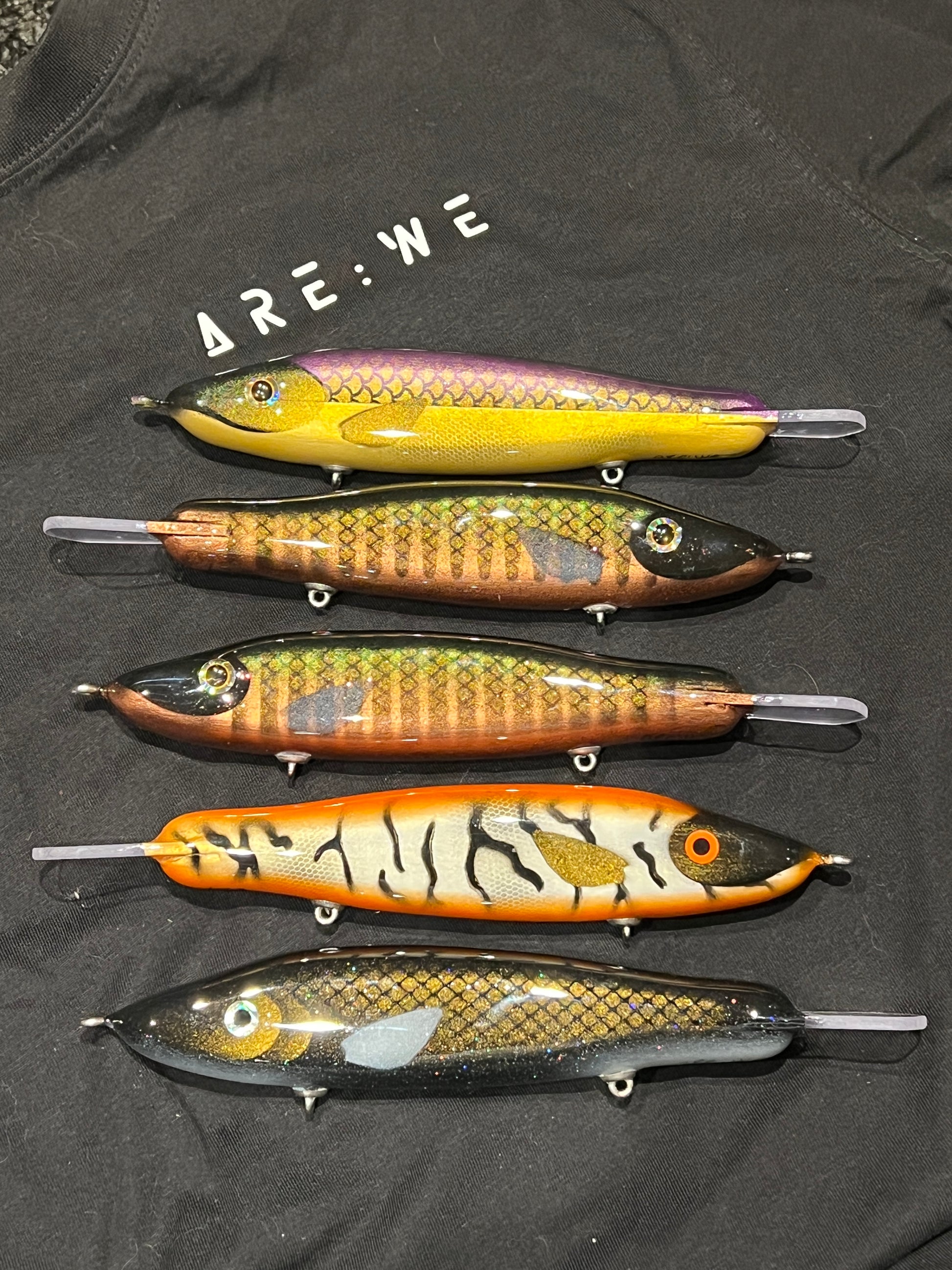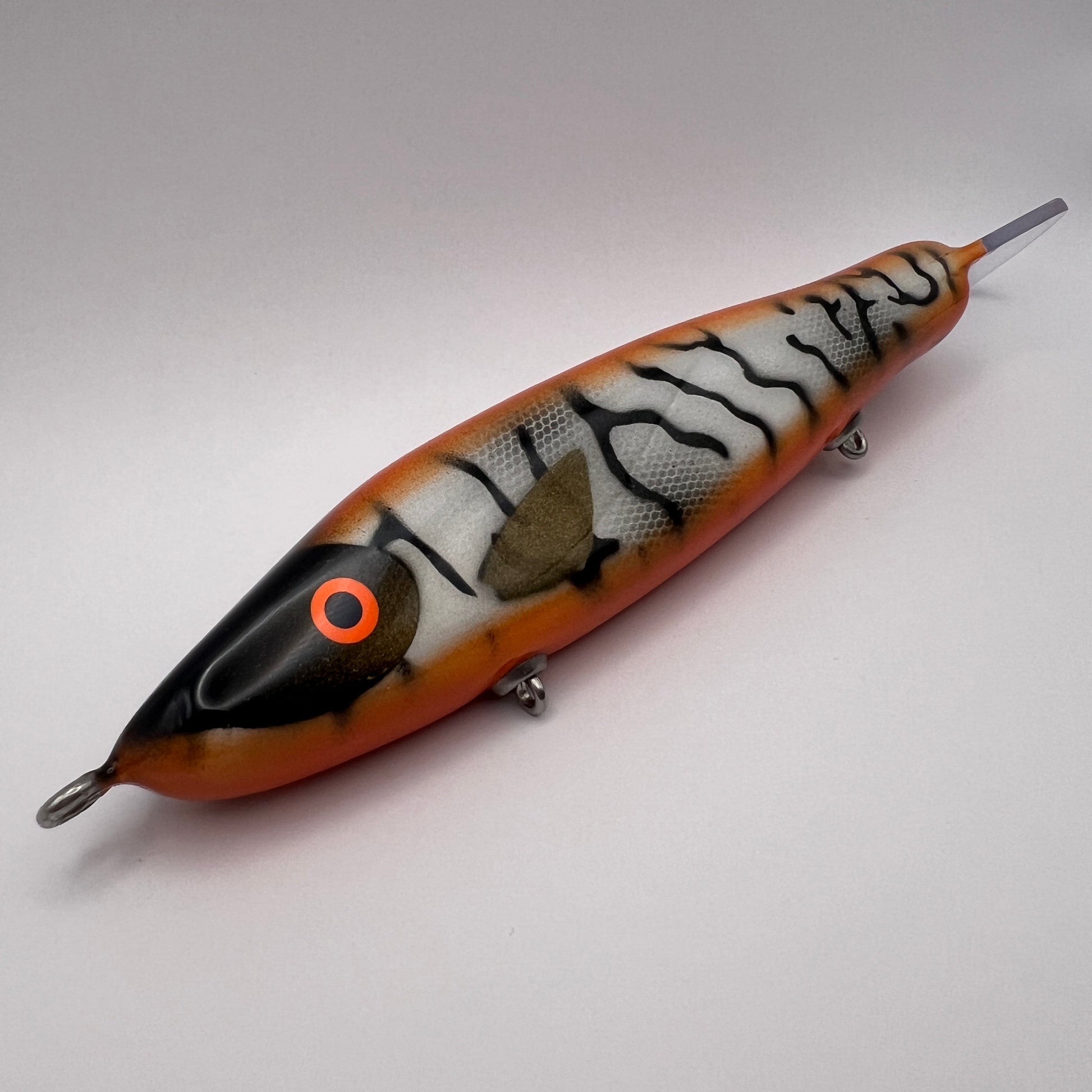 Tolkning av det klassiska amerikanska betet Manta. Ett glidebait som med sin bakre sked gör långa utsvängningar vid jerk och viktad som suspending. Låt den glida ut, hänga några sekunder och vänta på att det smäller!